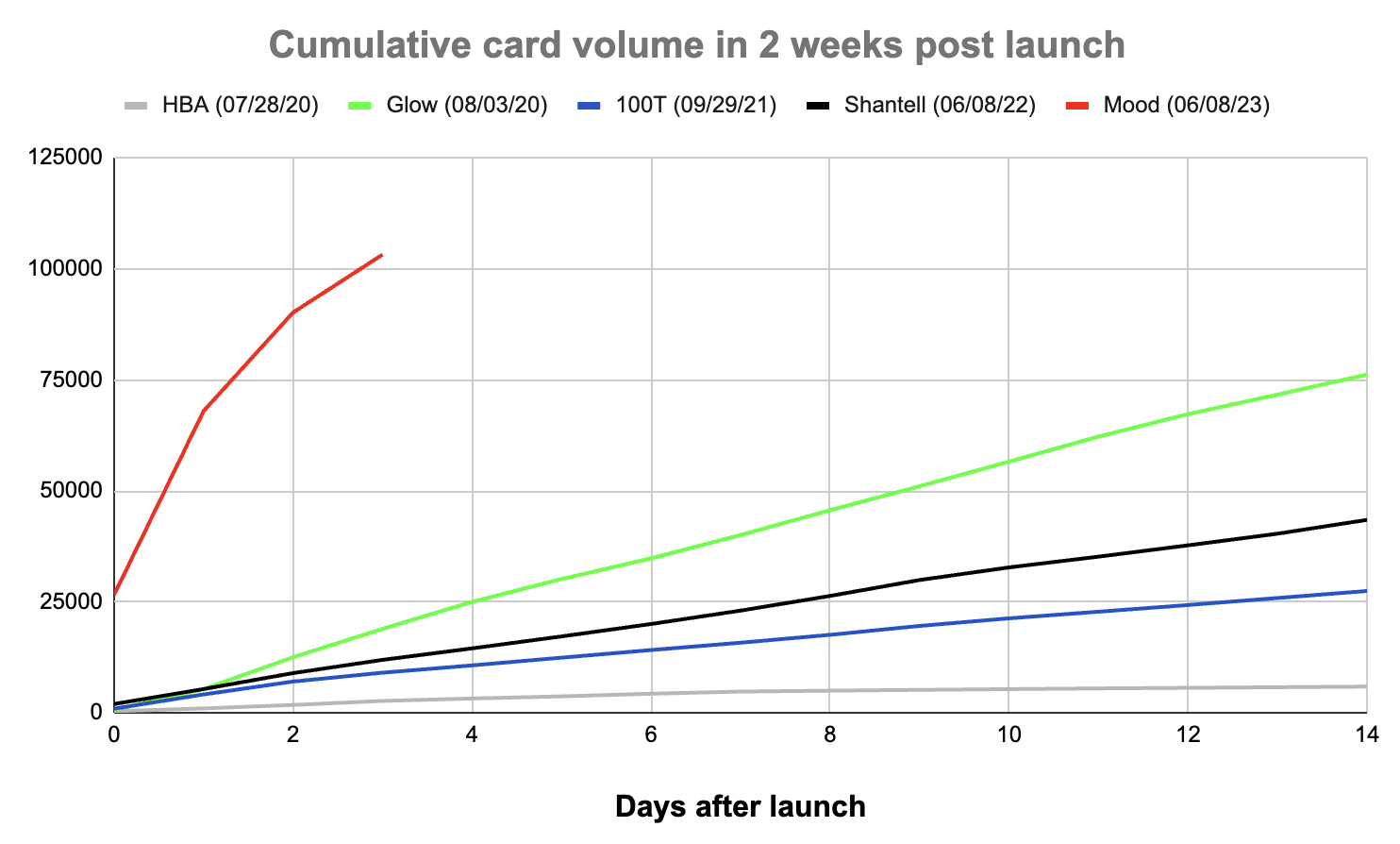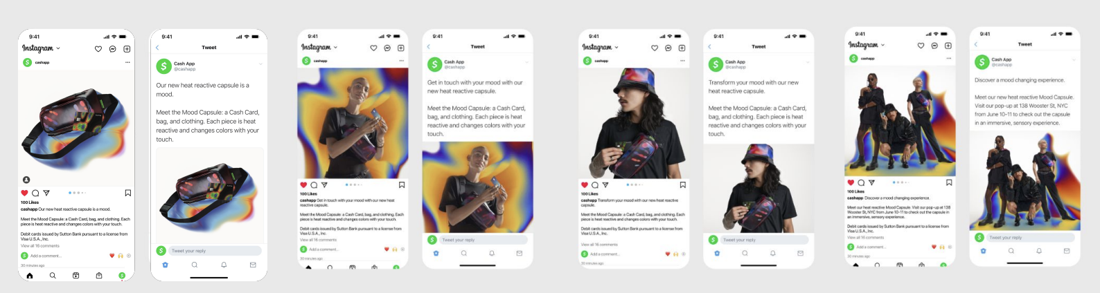 Our team wanted to treat the upcoming Mood Card launch like a fashion accessory drop – by pairing it with a Cash by Cash App product, launching it with a stylized campaign shoot, and hosting an exciting press event to preview and touch the card. The launch blew our previous card sales out of the water, selling 8x more cards in the first week than all previous launches and sold out in a week and our social posts became some of our top performing posts of the year.